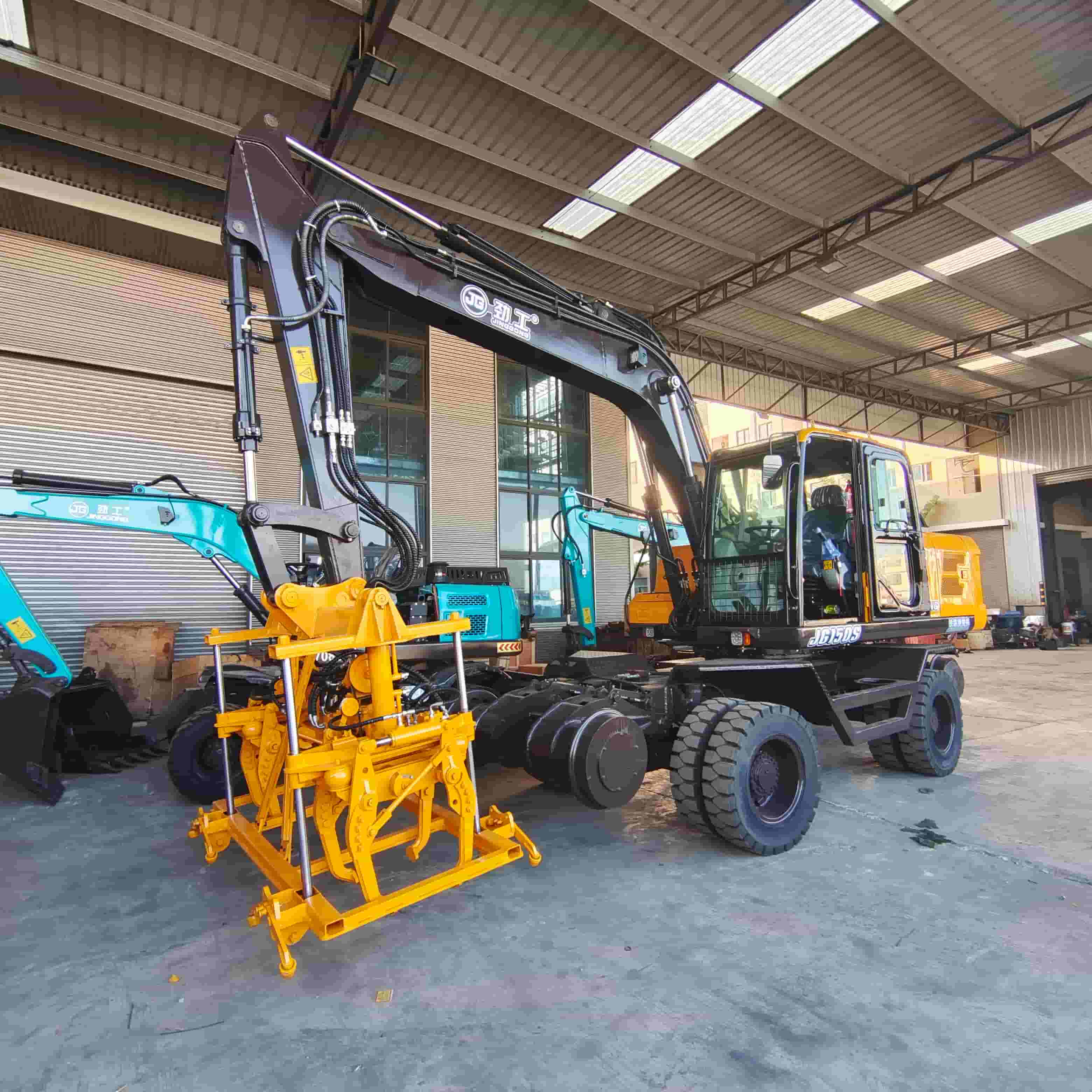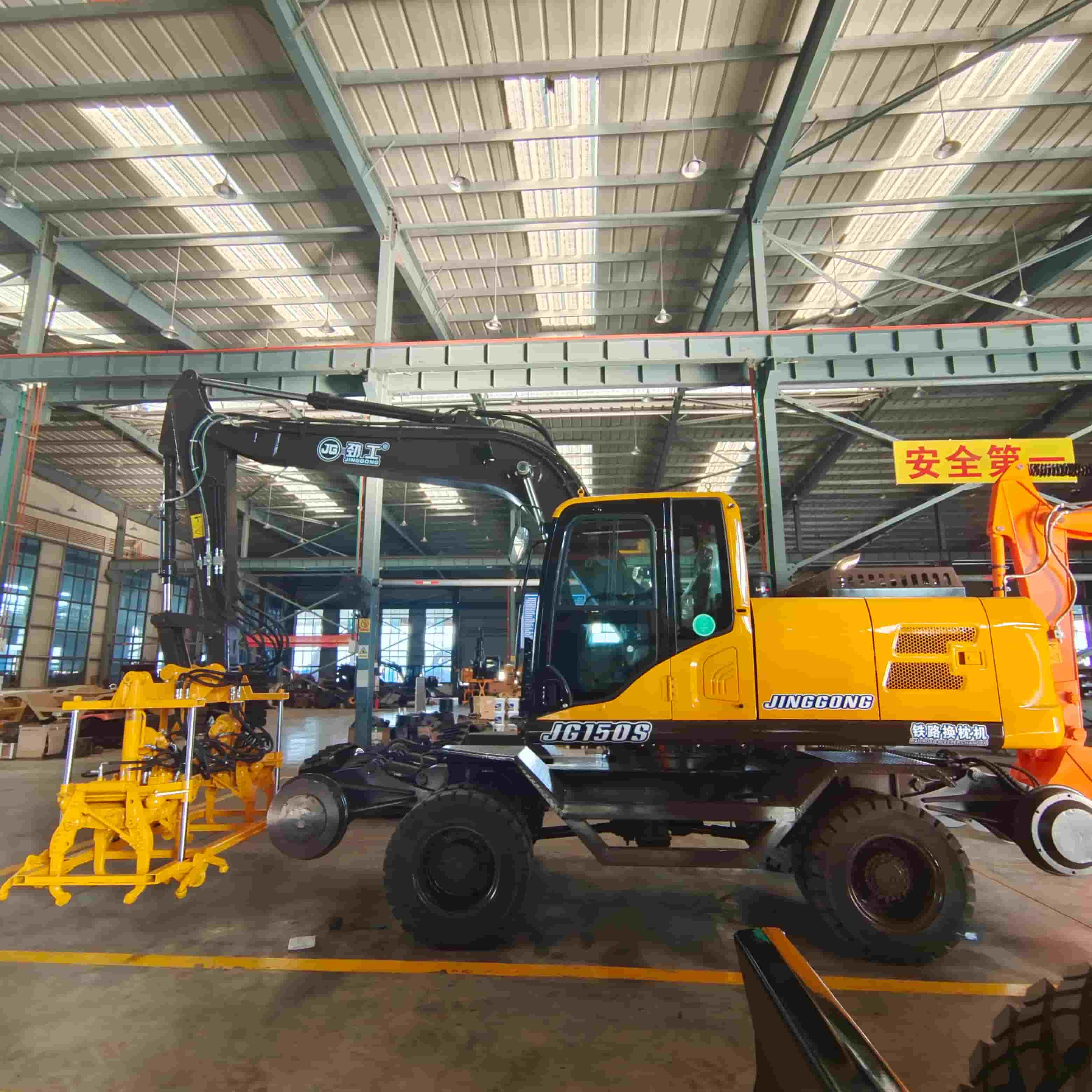 La pelle ferroviaire à double tête JG150S de 15 tonnes est un engin intelligent d'entretien des routes intégrant le compactage des voies et le terrassement. Grâce au fonctionnement conjoint de sa tête de compactage haute fréquence à l'avant et de son bras multifonctionnel arrière, son châssis bimode (pneus et chenilles) assure une stabilité optimale même sur sols gelés, dans les métros et autres environnements complexes. L'efficacité de la maintenance est accrue de 50 % et les coûts de main-d'œuvre réduits de 45 %.